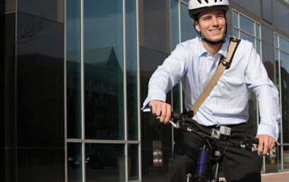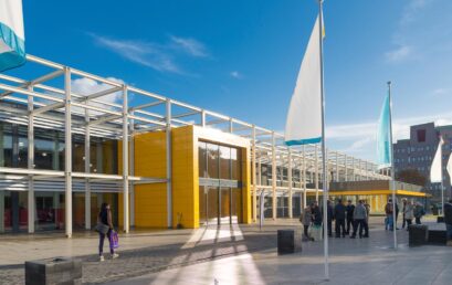 Some People and Students in front of the new and futuristic building of the University of Economics and Business in Vienna.
